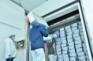 Forzen meat in loaded in Refer container